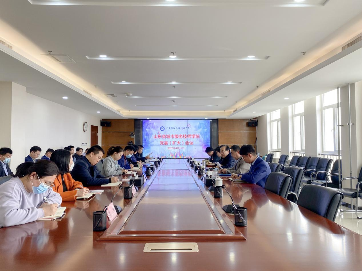 4月11日,省城市學院召開黨委(擴大)會議,學習傳達魯商集團一季度經濟運行情況分析會精神。學院黨委書記宋寧主持會議。