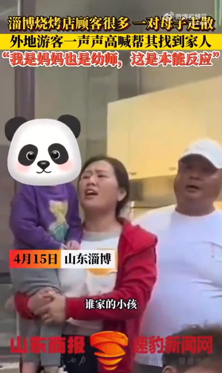 “這是誰家的小孩?”4月15日,一女士在淄博一燒烤店門前抱著走丟的孩子大聲吆喝找家長,視頻被以“燒烤店老板娘抱著孩子著急找媽媽”為題發到網上,引發關注。山東商報·速豹新聞網記者了解到,這其中有個小小的誤會,女子不是燒烤店老板娘,而是去淄博吃燒烤的游客——銀座幼教聯盟園滕州銀座小英才幼兒園園長王芳。