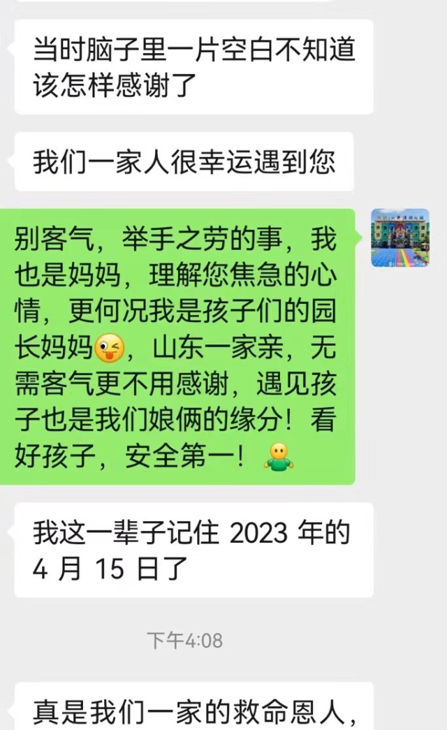 回憶起當時的反應,作為銀座幼教聯盟園滕州銀座小英才幼兒園園長的王芳,只是微微一笑,“作為兩個孩子的媽媽,這是母親的本能反應,同時,這也是我的職業本能,舉手之勞而已。在當時的情況下,換作任何一個人都會這么做。源于職業本能,我也蹲下去把孩子抱起來,給予孩子更多的‘愛’”。