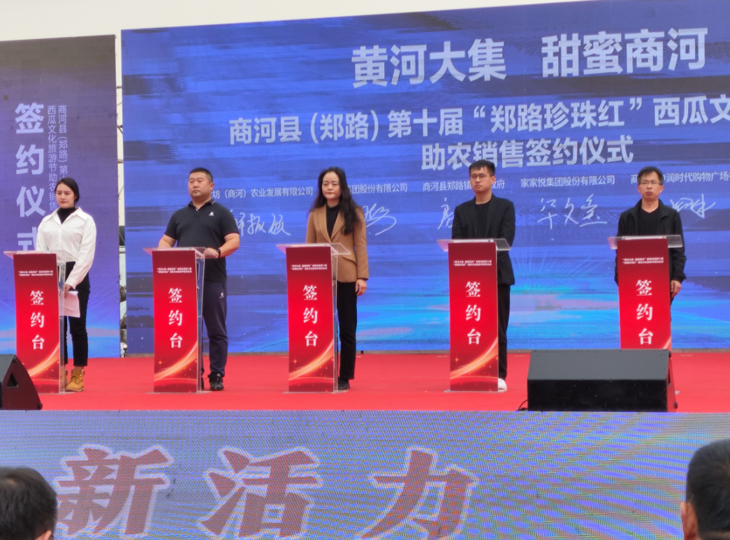 近日,銀座超市受邀參加商河縣第十屆“鄭路珍珠紅”西瓜文化旅游節(jié),并與商河鄭路鎮(zhèn)人民政府簽訂農(nóng)產(chǎn)品產(chǎn)銷戰(zhàn)略合作協(xié)議。