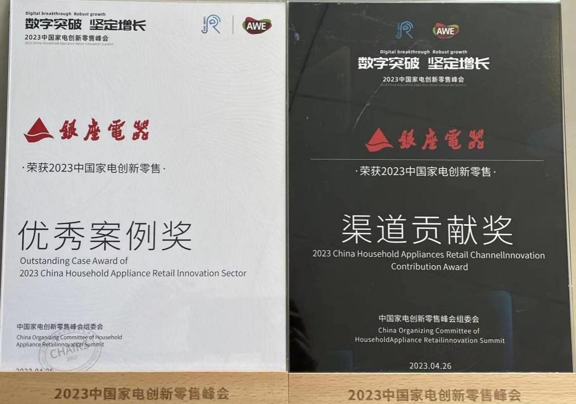 銀座電器榮獲“2023中國家電創新零售”優秀案例獎、渠道貢獻獎