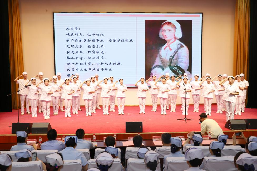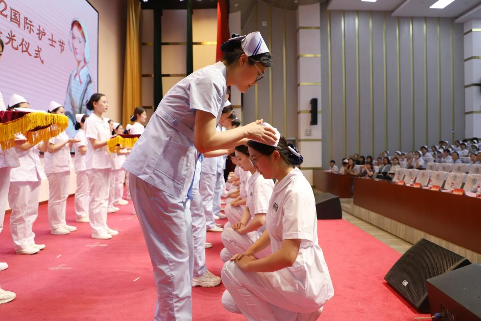 授帽儀式上,護生代表身著統(tǒng)一的護士服,步履堅毅、端莊穩(wěn)重地走到舞臺中央,護理前輩們?yōu)樽o生戴上圣潔的燕帽,點燃手中的紅燭。莊嚴的氣氛讓現(xiàn)場每個人深感護理工作的崇高和光榮。在錚錚誓言中,同學們表達了自己為護理事業(yè)奮斗終身的決心。