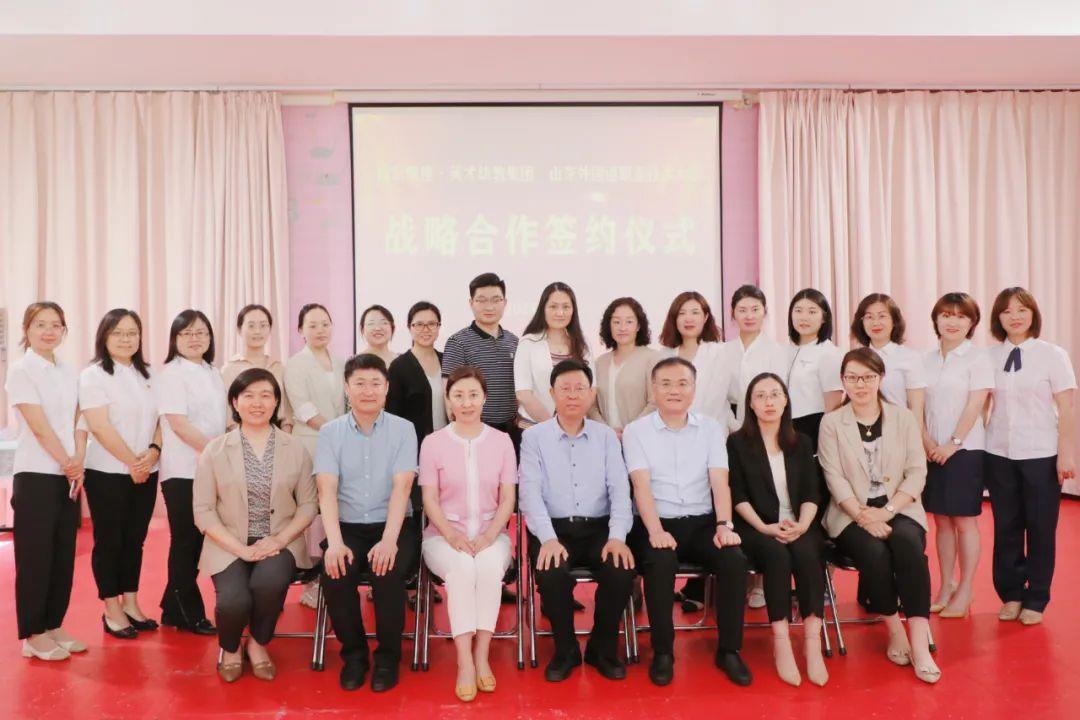 5月19日,銀座幼教與山東外國語職業技術大學舉行合作簽約儀式。魯商集團黨委常委、董事、組織人力資源部部長李林,山東華信工貿集團董事長拜文匯,山東外國語職業技術大學校長助理馬章勤出席活動。