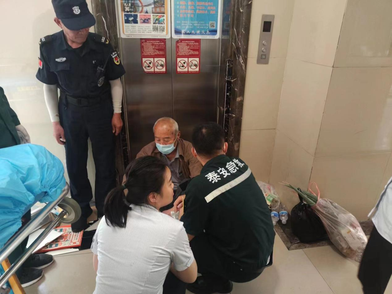 5月18日早8時,魯商服務(wù)泰安魯商中心項目接到求救電話,年逾七旬的業(yè)主趙先生在電梯間突然暈倒,同行的業(yè)主請求幫助。