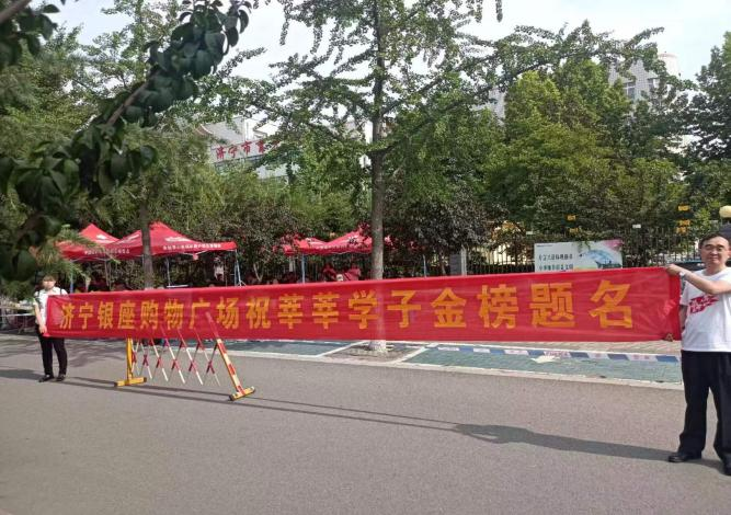 銀座濟南濟濼路店提前到達考點外放置條幅、搬運物資、發放特制扇子等清涼物資......一句句“孩子們,考試加油!”雖簡單卻飽含真情,讓考生們感受到濃濃的關愛和溫暖。