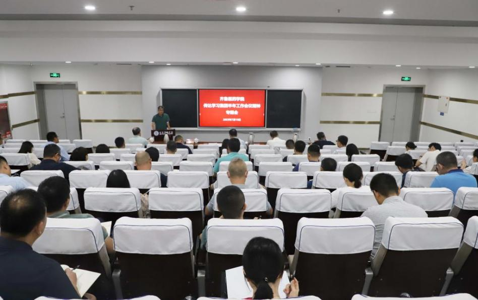 7月19日,齊魯醫藥學院召開專題會議,學習傳達魯商集團2023年上半年工作會議精神。學院董事長魏振東傳達集團黨委書記、董事長王緒超題為《以主題教育成效推動集團高質量發展 確保圓滿完成全年各項任務指標》的講話以及集團黨委副書記、董事、副總經理朱華建的工作部署要求,學院黨委書記呂傳毅出席會議并講話。