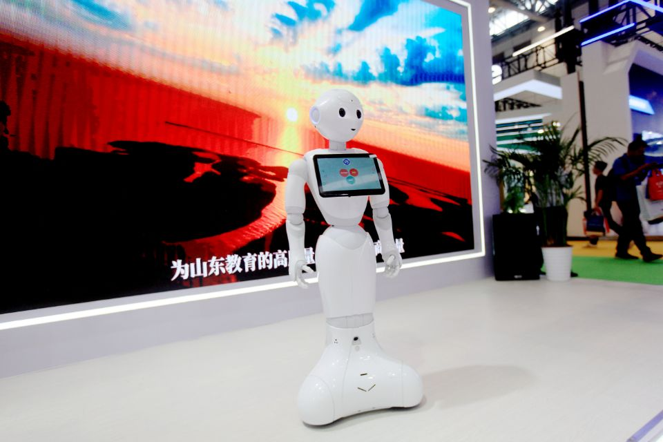 在教博會現場,山東商職學院自主研發的機器人正在與觀展者互動,會跳舞、還能實現對話。“這是我們學校科研團隊自去年開始研發的一款機器人,后期可用作導覽、健康養老等應用場景。”學院應用電子系大一學生李延航對記者說。