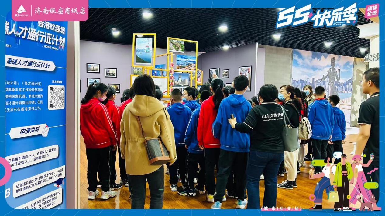 除了趙月,商城店開創的“IN像創藝場”還吸引了很多愛展的年輕人,對他們而言,打卡一個新展,如同開啟一場自由探尋的旅行,而在商場逛展更是別有一番風趣。比如對來自四川的大學生黃悅(化名)來說,與朋友一起打卡藝術展,更增加了“定格共同記憶”的儀式感。8月23日清晨,黃悅和好友乘坐高鐵來到濟南,開啟“特種兵式旅游”。“我們此趟出行主打一個文化和美食路線。”黃悅說道。當日抵濟吃了把子肉后,就來到了他們旅游的第一站——泉城廣場。“做攻略發現銀座商城最近很火,逛街的同時還能打卡文化展覽,留下美好記憶,我們感到很開心。”