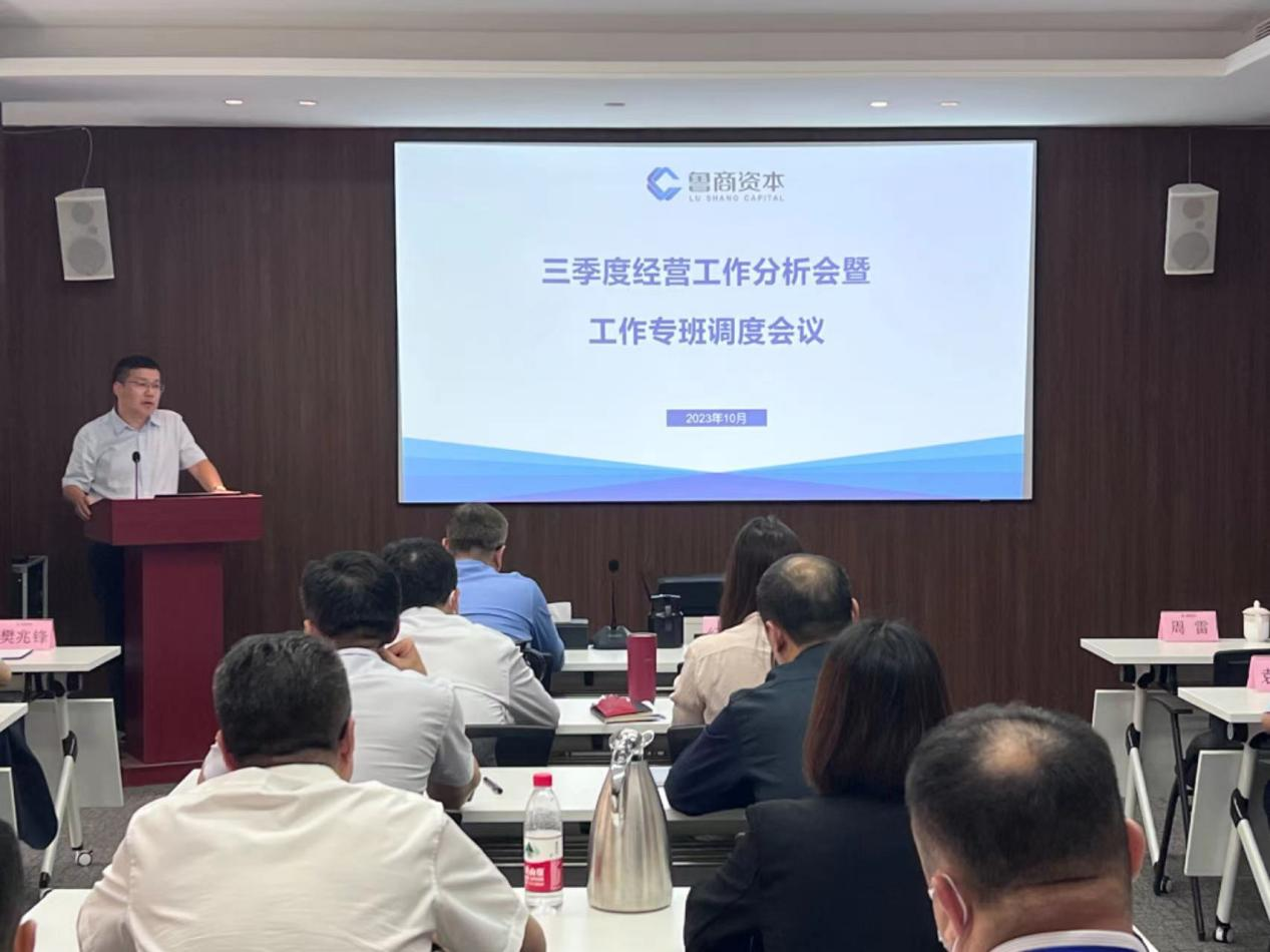 10月8日,魯商資本召開三季度經(jīng)營分析會,傳達(dá)魯商集團(tuán)三季度經(jīng)濟(jì)運行情況分析會議精神,分析公司經(jīng)營形勢,聚焦年度任務(wù),安排部署四季度重點工作任務(wù)。公司黨委書記、董事長紀(jì)軍令,黨委副書記、總經(jīng)理王軍出席會議并講話。