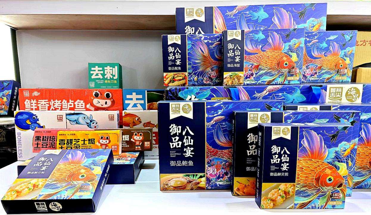 本次推介會“魯商舌尖”帶來了精心研制的海參、蝴蝶蝦、鮑魚等年菜“御品八仙宴”,以及鲅魚餃子等特色主食,吸引眾多看展市民駐足品鑒?!坝钒讼裳纭笔恰棒斏躺嗉狻迸c山東城市服務職院共同研發調制的團圓年夜飯,不僅在包裝上融合了傳統文化元素,而且在菜品搭配和口味上做了研發創新,用美食與文化的結合營造節日氛圍,增強傳統節日的儀式感。“魯商舌尖”還特意設置了線上直播間,通過視頻號、抖音號為全國人民推介山東好品,將特色農產品、“魯商舌尖大師菜”通過精彩的講解、實惠的價格走進千家萬戶。