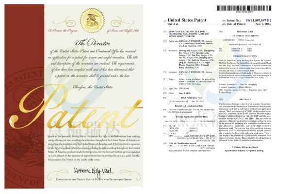 近日,焦點(diǎn)福瑞達(dá)與江南大學(xué)聯(lián)合申報(bào)的“Strain of enterobacter for degrading hyaluronic acid and application thereof”(一種腸桿菌及其應(yīng)用)獲美國(guó)發(fā)明專(zhuān)利授權(quán)。