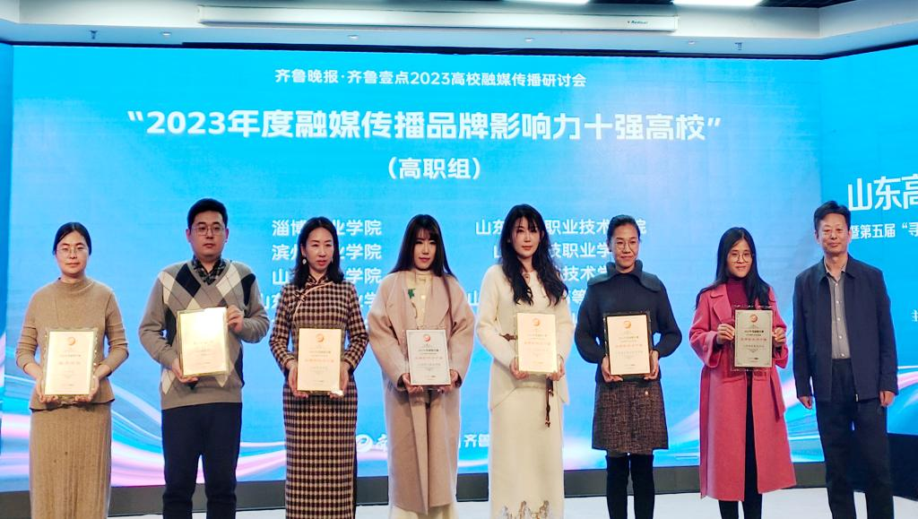11月29日,齊魯晚報·齊魯壹點2023高校融媒傳播研討會暨第五屆“尋找山東最美大學”微視頻/攝影大賽頒獎典禮舉行。山東商職學院榮獲“2023融媒傳播-山東高職(專科)院校傳播力十強”和第五屆“尋找山東最美大學”微視頻/攝影大賽“優秀組織獎”。