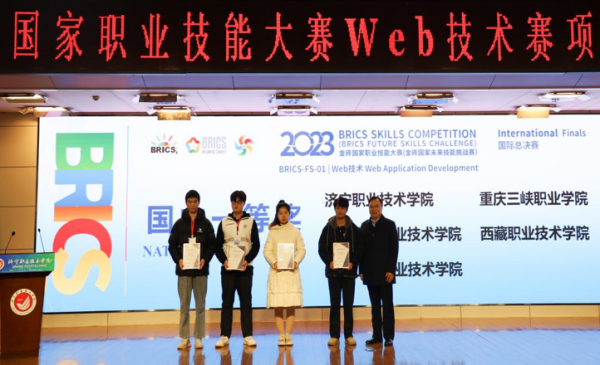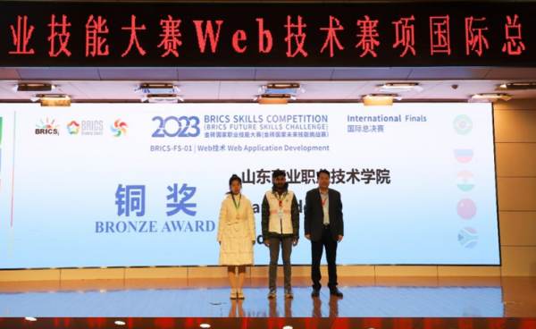 12月1日至3日,2023金磚國家職業(yè)技能大賽Web技術賽項國際總決賽舉行,來自金磚五國及孟加拉國、巴基斯坦等10國的線上線下共309支參賽隊伍參加此次比賽。經(jīng)過激烈角逐,山東商職學院云計算技術與應用產(chǎn)業(yè)學院學生張可欣獲總決賽國內(nèi)一等獎,指導老師薛現(xiàn)偉獲優(yōu)秀指導專家獎,山東商職學院獲參賽國銅獎。