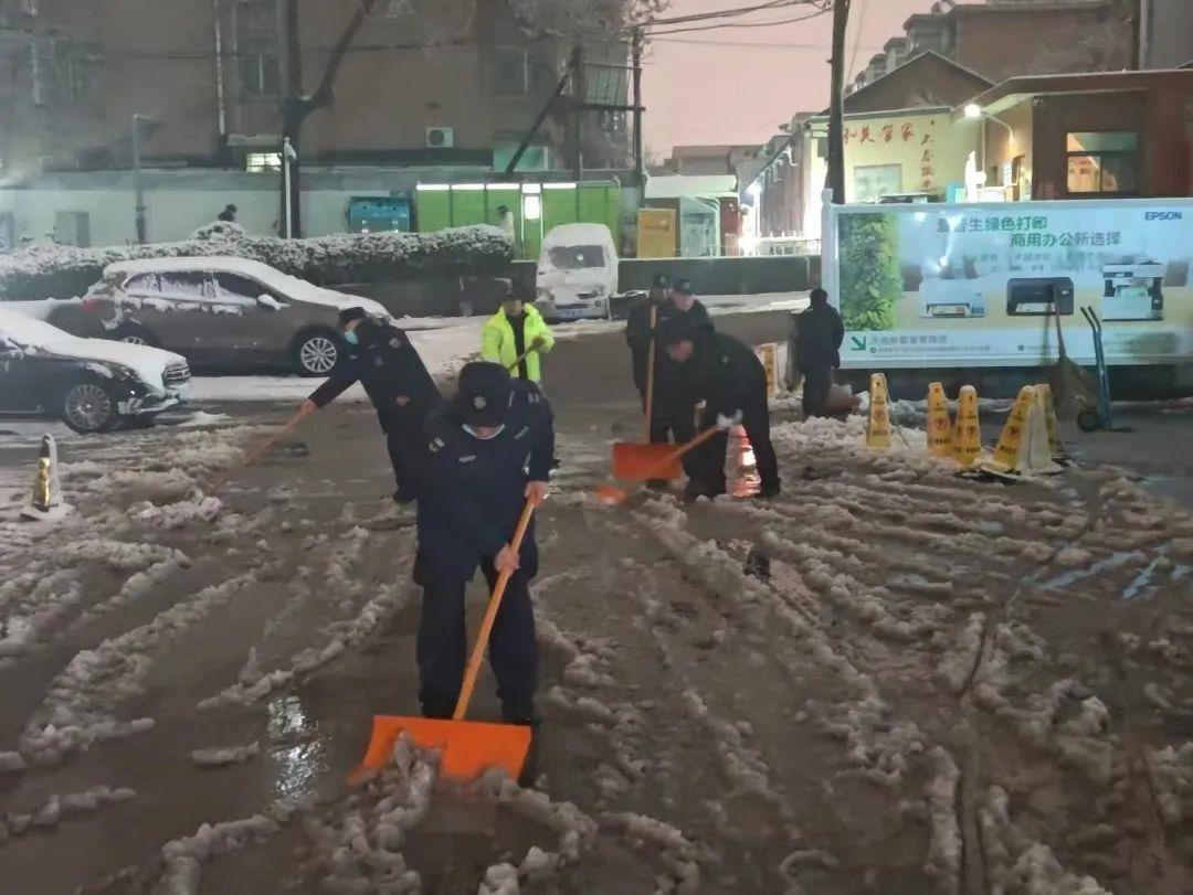 各項目提前開展排水系統檢查清理、入戶防寒檢查、水暖設備巡查等工作,把相關工作前置,保障業主的日常生活及出行安全。暴雪來臨后,各項目迅速啟動清雪除冰應急預案,全力保障業主出行。國奧城項目全員出動,通過拋灑融雪劑、人工+機械鏟車集中作業的方式,迅速清理路面積雪,在各樓宇大廳出入口鋪設地毯、防滑墊,放置安全提示牌,保障項目業主的出行安全。在銀座中心、好望角、鳳凰城、御龍灣等項目,工作人員在完成清雪除冰工作的同時,準備了熱姜茶,為業主們驅走寒氣,送上溫暖。
