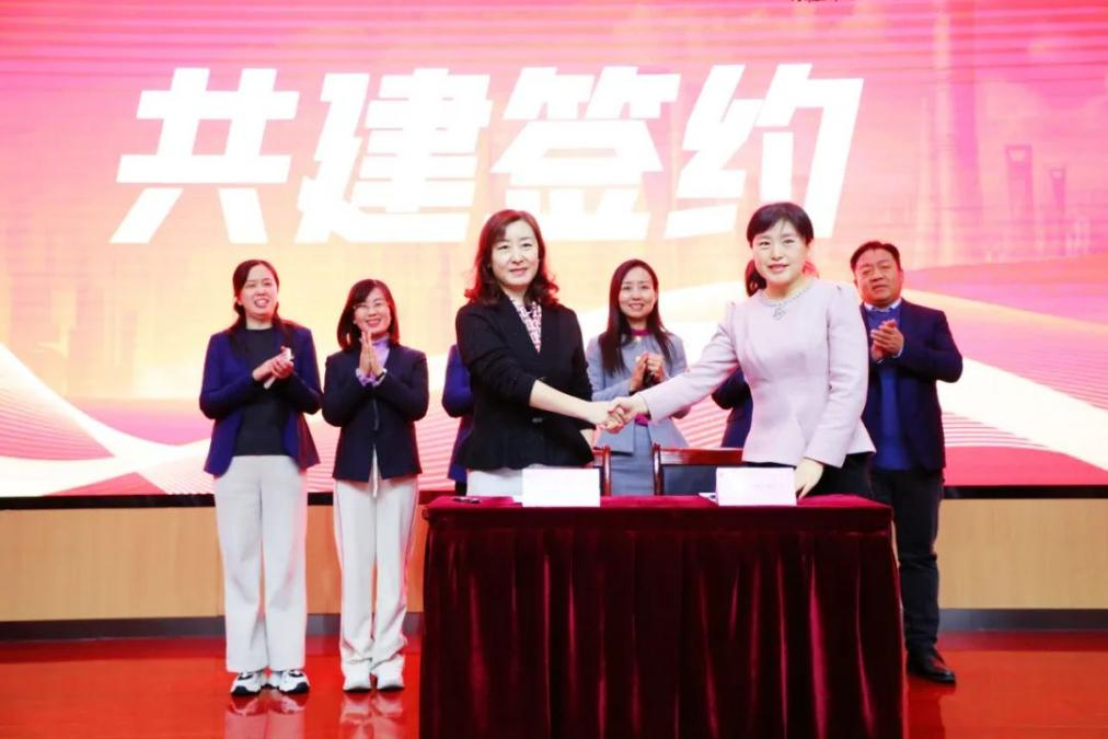 袁霞與李燕代表雙方簽訂健康教育基地協議。山東婦幼保健院相關負責人為銀座幼教各分園授牌。