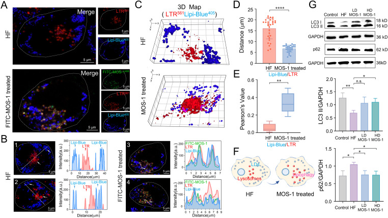 天然來源寡糖具有抗炎、抗腫瘤等重要生物活性,是省藥科院重要研究方向之一。為加速寡糖等天然藥物發(fā)現(xiàn)進(jìn)程,研究團(tuán)隊(duì)提出了單細(xì)胞器藥物示蹤策略,可實(shí)現(xiàn)直接原位可視化監(jiān)測天然產(chǎn)物對細(xì)胞器功能的影響來快速鎖定潛在適應(yīng)癥。團(tuán)隊(duì)以省藥科院制備的海洋來源具有新穎結(jié)構(gòu)的寡糖MOS-1為例,對MOS-1進(jìn)行熒光標(biāo)記,結(jié)合超分辨熒光成像技術(shù)等,實(shí)時(shí)示蹤MOS-1在細(xì)胞器中的定位、分布以及對細(xì)胞器功能的影響。研究顯示,MOS-1可定位于肝細(xì)胞內(nèi)的溶酶體,并可改變脂滴的重分布,促進(jìn)脂噬發(fā)生和細(xì)胞內(nèi)脂質(zhì)成分的代謝。這一結(jié)果揭示MOS-1可能是治療脂質(zhì)相關(guān)疾病的候選藥物。研究人員進(jìn)一步在動(dòng)物模型中進(jìn)行了驗(yàn)證,發(fā)現(xiàn)MOS-1顯著促進(jìn)甘油三酯降解,減少脂滴積聚,減輕肝損傷和脂肪變性。