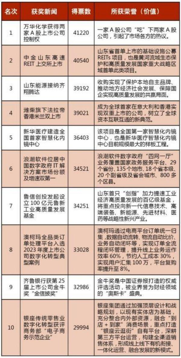 近日,在省國(guó)資委和大眾報(bào)業(yè)集團(tuán)的指導(dǎo)下,由《山東國(guó)資》編輯部組織發(fā)起的“2023山東國(guó)資國(guó)企年度新聞評(píng)選”活動(dòng),經(jīng)廣大國(guó)資國(guó)企員工踴躍投票和專家評(píng)議,評(píng)出“科技創(chuàng)新”“綠色低碳”“上市公司”三個(gè)類別的十大新聞。本次活動(dòng)共收到72家省屬、市屬企業(yè)提報(bào)的131條新聞,錄得58970張有效投票。“明仁福瑞達(dá)獲評(píng)國(guó)家級(jí)綠色工廠”“銀座傳統(tǒng)零售業(yè)數(shù)字化轉(zhuǎn)型獲評(píng)商務(wù)部‘電子商務(wù)示范企業(yè)’”分別上榜“綠色低碳”“上市公司”十大新聞。