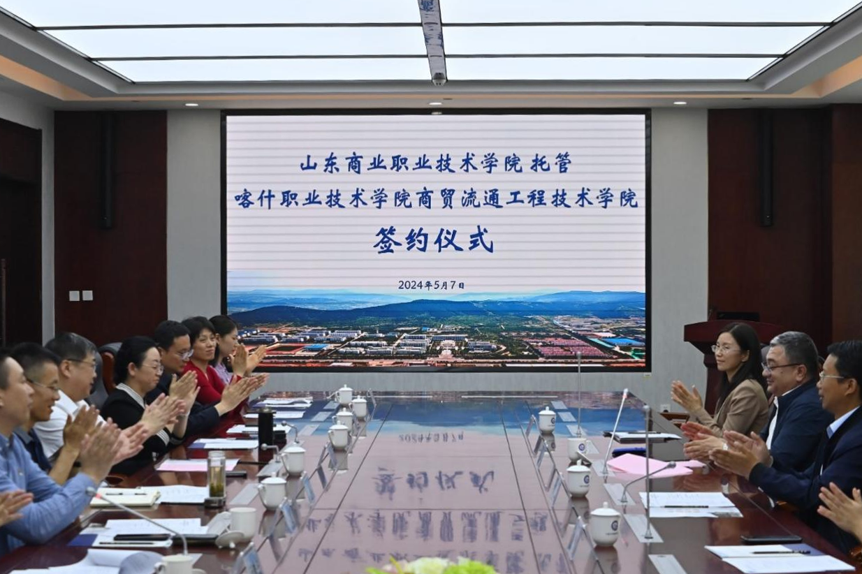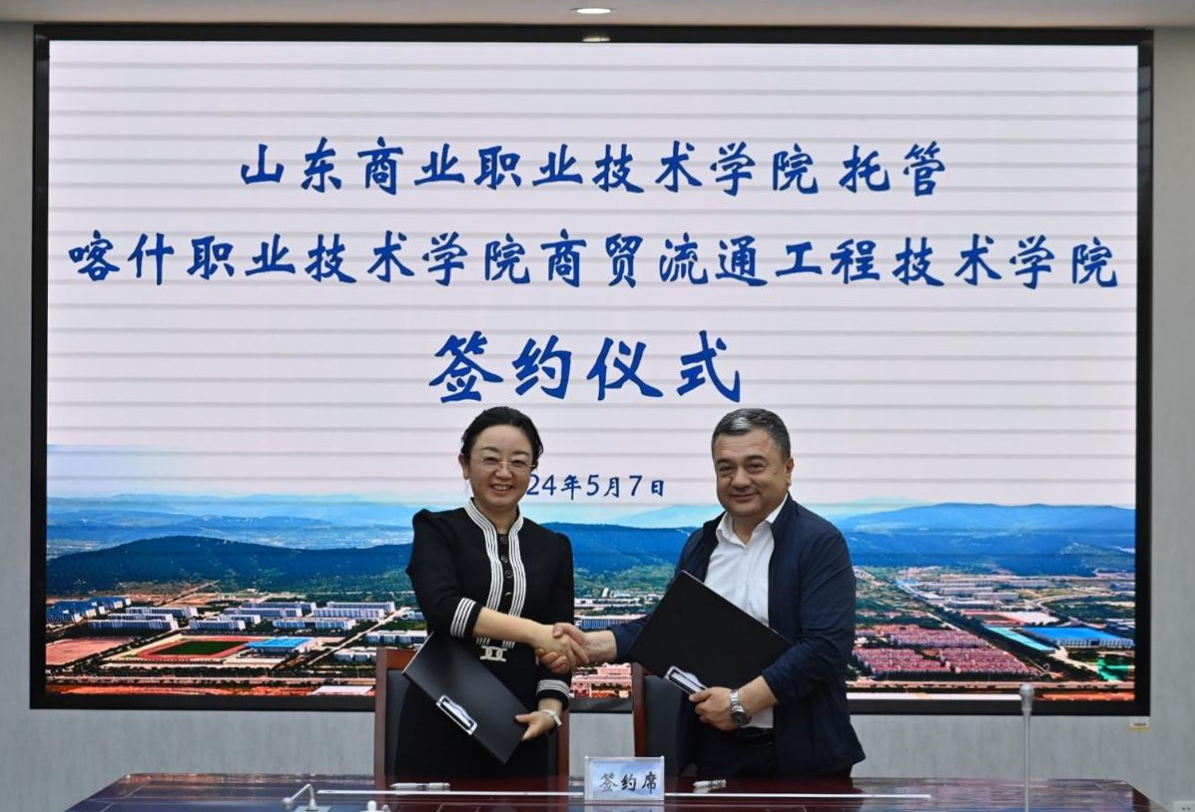 5月7日下午,山東商職學(xué)院與喀什職業(yè)技術(shù)學(xué)院簽訂商貿(mào)流通工程技術(shù)學(xué)院托管協(xié)議,標(biāo)志著兩校交流合作再上新臺(tái)階,魯商集團(tuán)為推動(dòng)山東省對口支援新疆工作再添新動(dòng)力。