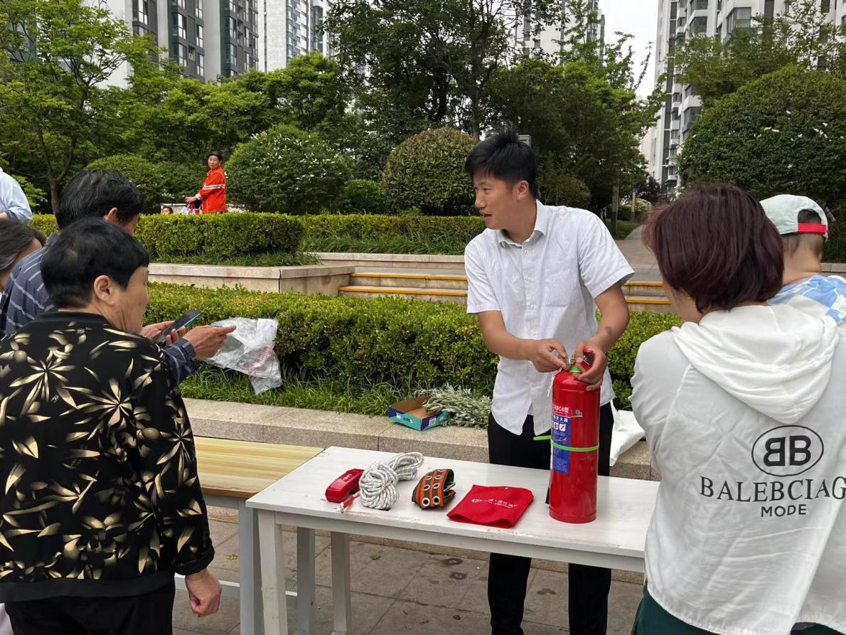 為提升廣大業主安全意識,提高業主遇到危險的自救能力,魯商服務藍岸國際項目開展社區活動,向廣大業主普及初期火災撲救常識,同時對滅火毯、滅火器等常用消防救援器具的功能及使用方法進行了現場演示。