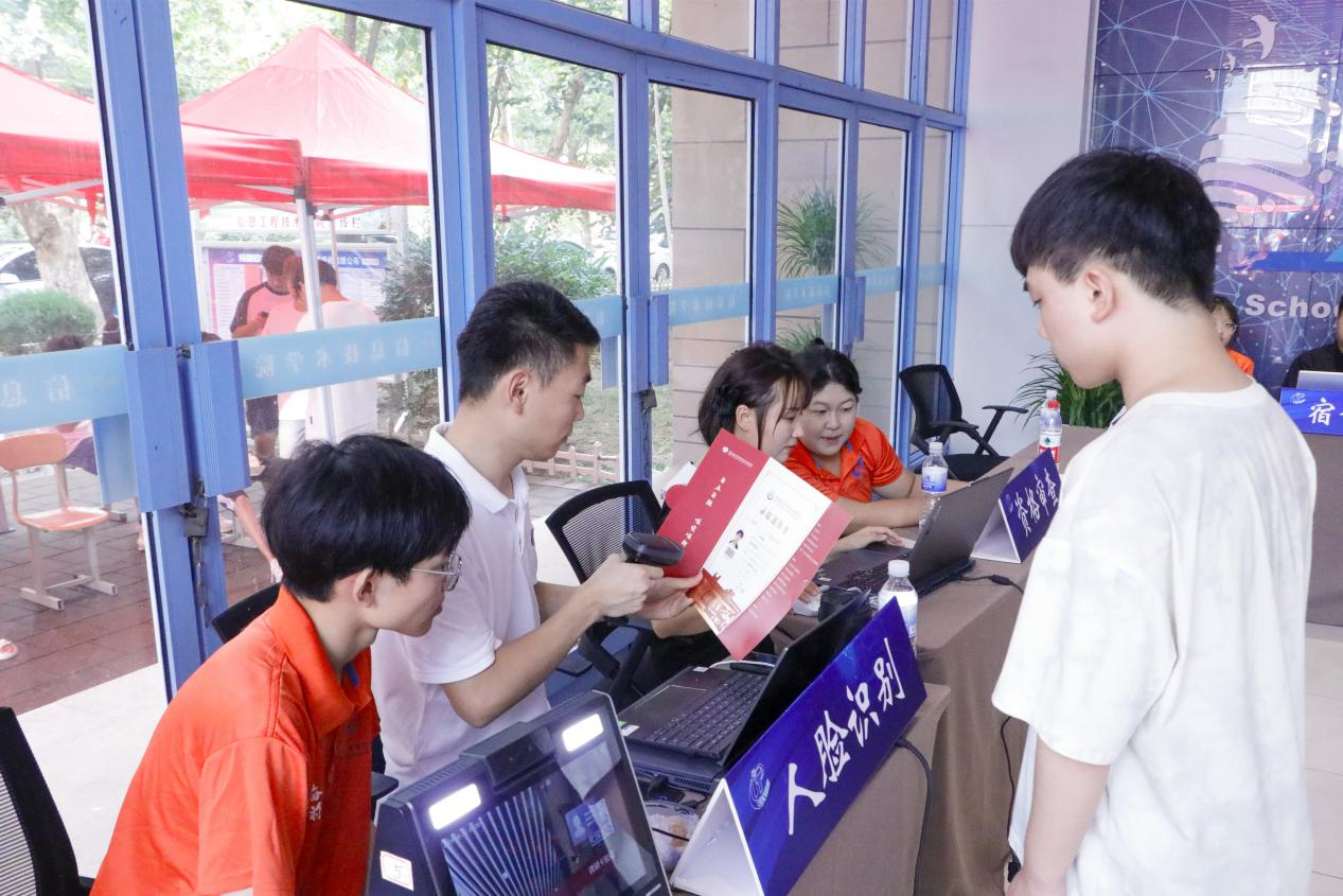 報到前,新生通過在線平臺完成繳費、查詢分班情況、選取宿舍床位,入學手續(xù)“碼”上辦;入校后,新生現(xiàn)場刷臉進行身份核驗,“一鍵入校”簡單高效。學校還通過微信、微博、抖音等新媒體平臺開展全方位宣傳,為新生入學提供無微不至、便捷通暢的高效服務;通過大數據平臺實時更新新生報到入校統(tǒng)計,動態(tài)“直播”報到進程。