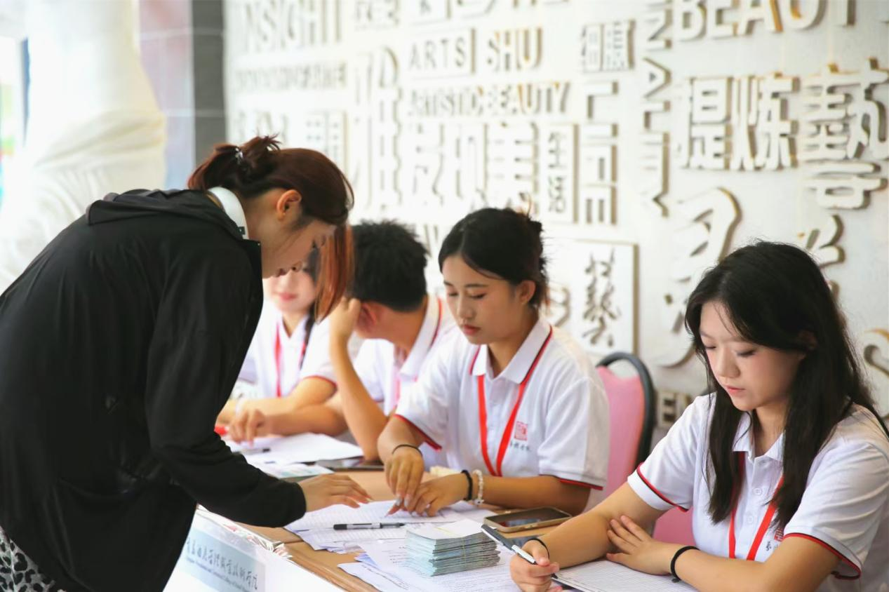 “魅力酒管”專屬打卡墻、“幸福雅集”驛站、味味道來“新質烹飪青年”大闖關、“匠心工程”姓名墻、工商“速運”、心想“柿”成心愿墻、“E”見傾“信”幸運大轉盤、“藝+”沉浸式打卡點……這些獨具特色的迎新活動,引得眾多新生和家長駐足參與、拍照留念,有助于新生更快地了解專業(yè)文化、融入校園生活。