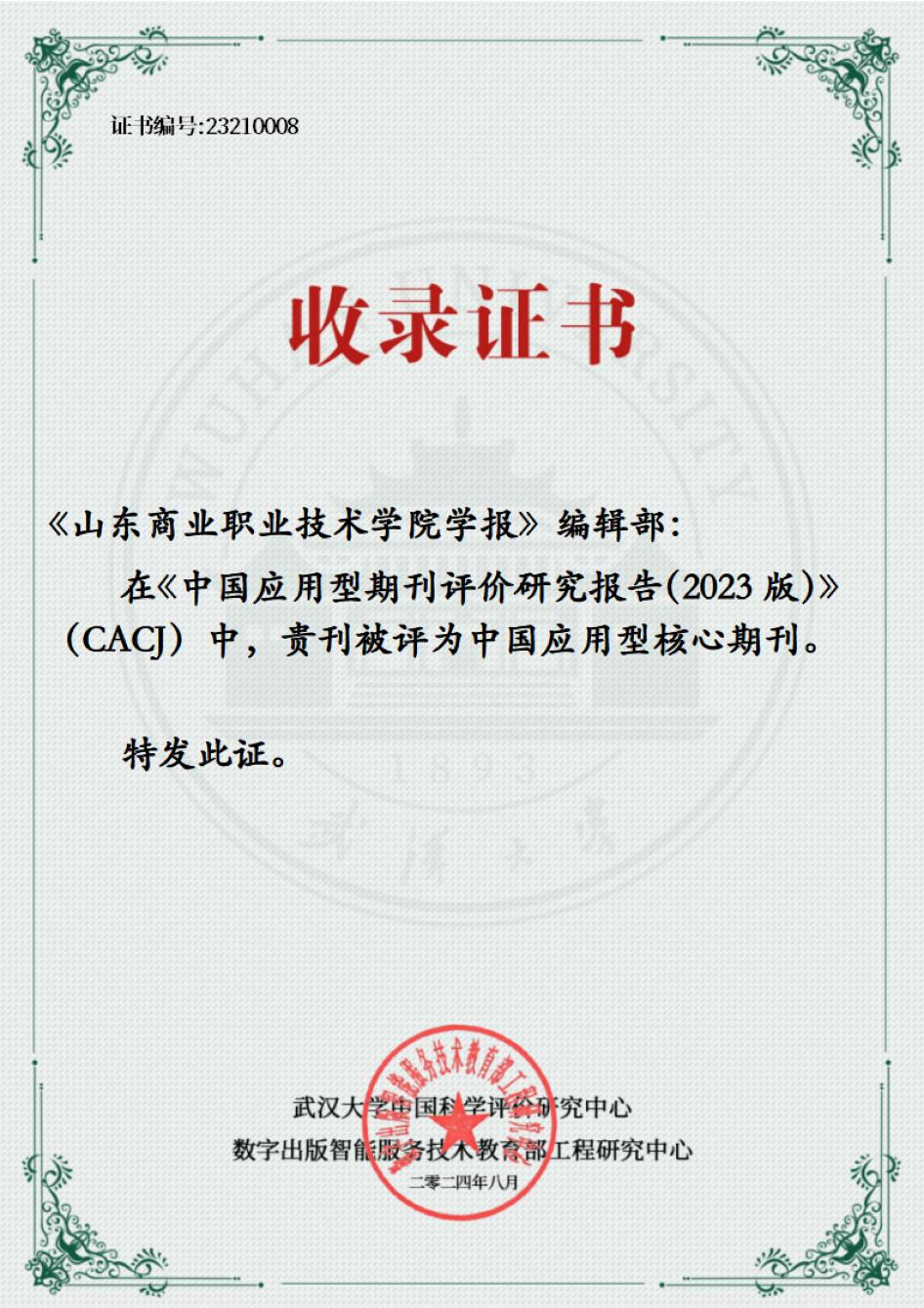 近日,武漢大學中國科學評價研究中心、數(shù)字出版智能服務技術教育部工程研究中心聯(lián)合開展的國內首次應用型期刊評價工作順利完成,《中國應用型期刊評價研究報告(2023版)》正式發(fā)布,《山東商業(yè)職業(yè)技術學院學報》被評為中國應用型核心期刊。