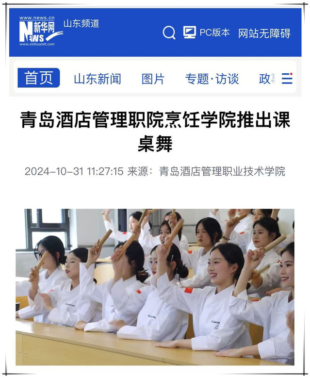 為充分發(fā)揮烹飪類專業(yè)優(yōu)勢(shì),聚焦職業(yè)特色,烹飪學(xué)院師生用形體語(yǔ)言訴說(shuō)工匠禮儀規(guī)范,用藝術(shù)形式展現(xiàn)工匠精神內(nèi)涵,編排了專業(yè)曼舞——《味味道來(lái)·“桌”而不凡》,將思政元素巧妙融入實(shí)訓(xùn)課堂教學(xué)設(shè)計(jì),學(xué)禮、習(xí)禮、用禮三者并重,實(shí)現(xiàn)潤(rùn)物無(wú)聲、內(nèi)化于心的思政教育效果。課桌舞視頻推出后,在校園、社會(huì)引起熱烈反響,被新華網(wǎng)、大眾網(wǎng)等媒體轉(zhuǎn)發(fā)和宣傳,吸引大量點(diǎn)贊、轉(zhuǎn)發(fā)。