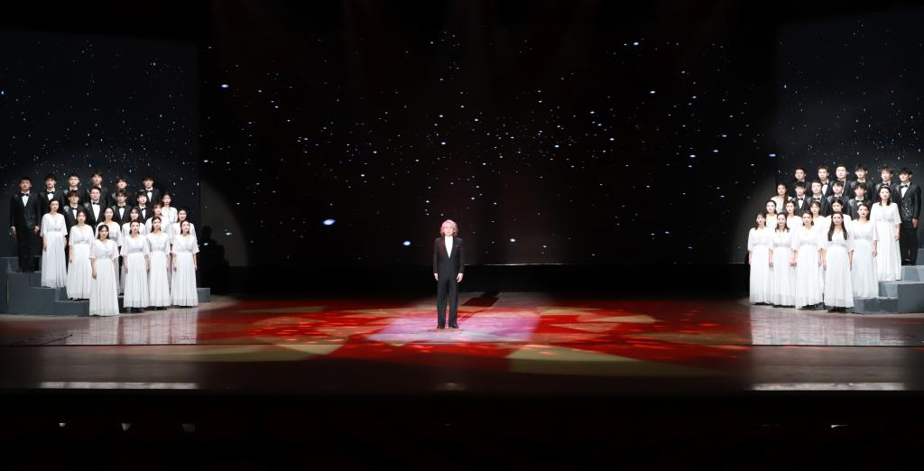 正式演出中,徐濤領(lǐng)誦,學(xué)校42名師生合誦,同臺(tái)演繹了《焦裕祿之歌》。徐濤沉穩(wěn)大氣的臺(tái)風(fēng)、富有感染力的嗓音、由內(nèi)而生的真摯情感直擊人心,現(xiàn)場(chǎng)演出效果震撼,藝術(shù)感染力極強(qiáng),呈現(xiàn)了一場(chǎng)精美絕倫的視聽盛宴。