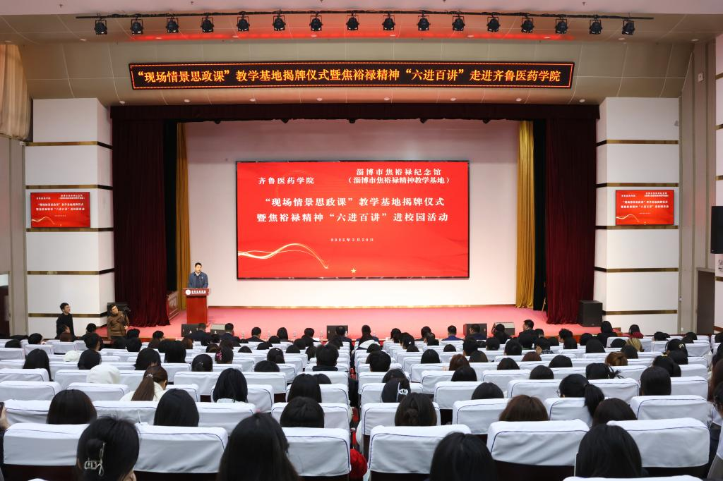 為弘揚焦裕祿精神,傳承紅色基因,近日,齊魯醫藥學院與淄博市焦裕祿紀念館“現場情景思政課”教學基地揭牌儀式暨焦裕祿精神“六進百講”進校園活動成功舉行。