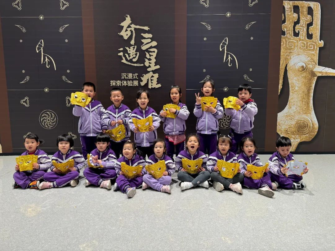 在展館的文物展覽區,孩子們近距離觀賞了黃金面具、青銅神壇、青銅人首鳥身像等三星堆館藏文物的精美復刻品。講解老師用生動有趣的語言,為孩子們打開了一扇通往古蜀文化世界的神秘大門,讓他們身臨其境地感受到了三星堆古蜀文化的深厚底蘊與獨特魅力。