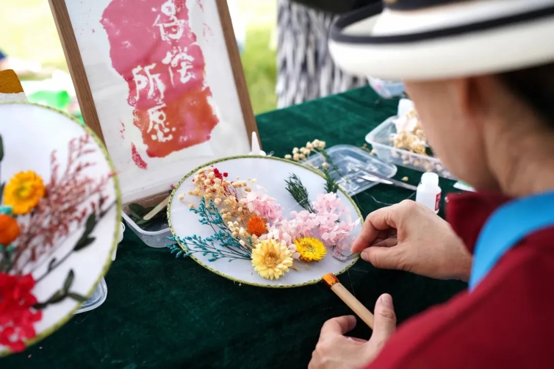 在伊帕爾汗薰衣草文化產業園的活動現場,手作與浪漫的邂逅分外精彩,一針一線繡出的民族紋樣刺繡、色彩斑斕的創意編織品,每一件都是傳統文化與生活美學的生動注腳;緊鄰的“薰衣草文創展”則以“香”為核心,伊帕爾汗旗下的香薰精油、天然護膚禮盒、薰衣草元素銀飾等文創產品整齊陳列,從嗅覺到視覺,全方位傳遞薰衣草的治愈力量。最受親子家庭和年輕群體期待的當屬“手工藝作坊”——現場提供薰衣草香包、手工皂制作體驗,觀眾可親手將新鮮薰衣草填入棉麻包,或調和精油制作專屬香皂,讓這份“可帶走的浪漫”成為旅程的獨特記憶。