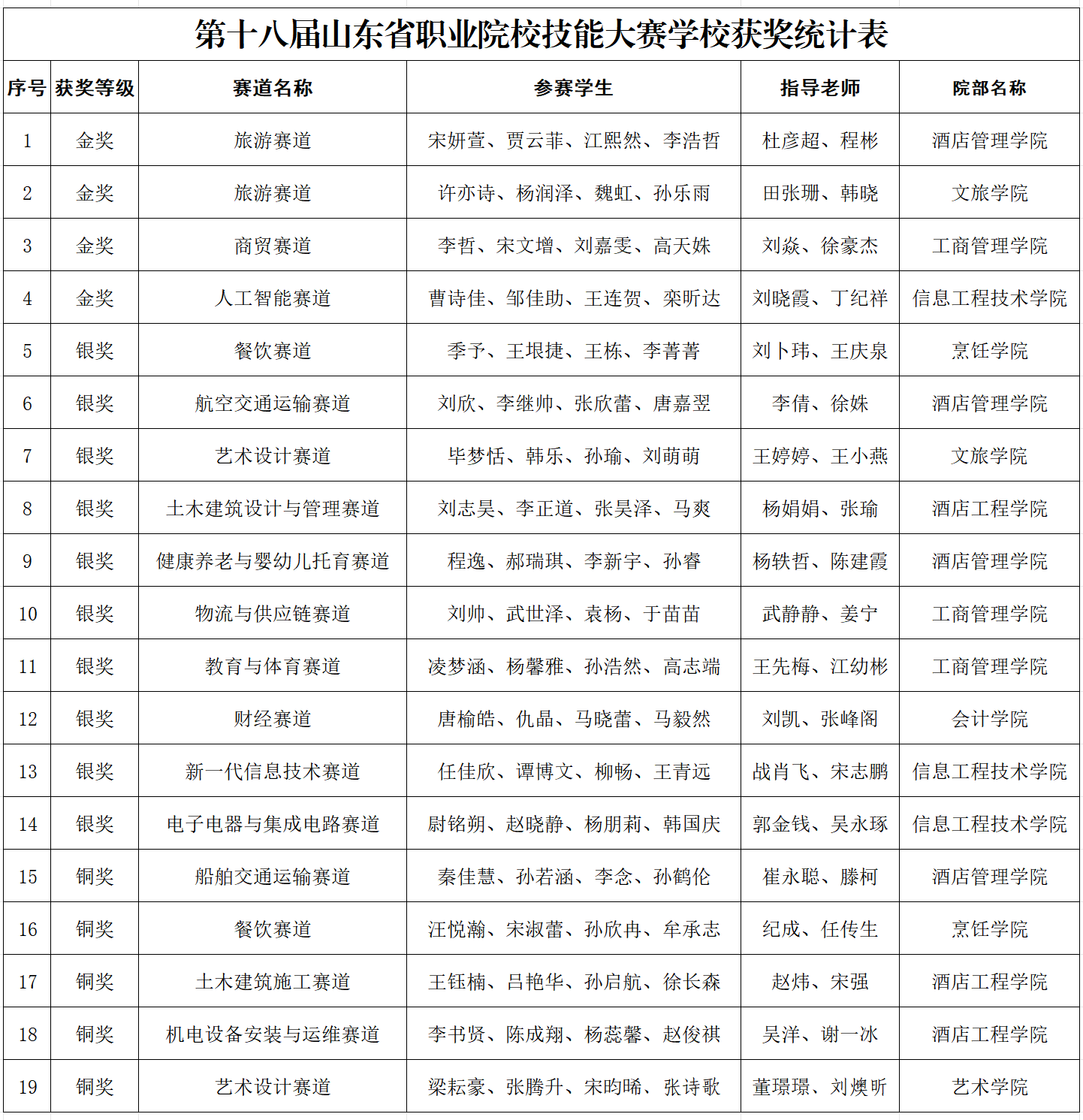 4金10銀5銅!青島酒店管理職院學生在第十八屆山東省職業院校技能大賽中取得優異成績