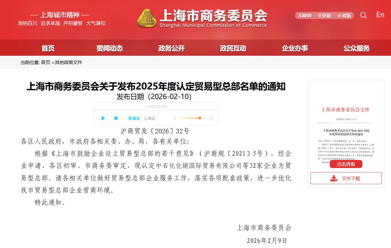 據悉,“上海市貿易型總部”的認定工作嚴格依照相關規定執行,旨在大力發展具有影響力的總部型經濟,進一步集聚和培育更多具有多功能、高能級的國內外貿易企業總部。