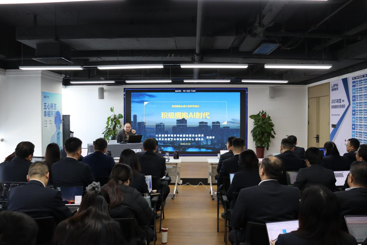 3月10日上午,魯商服務“頭雁計劃”系列培訓首期課程——《積極擁抱人工智能時代》專題培訓正式開講。本次培訓聚焦企業數字化轉型核心需求,全面提升管理團隊數字化素養與創新思維,夯實數字化轉型人才支撐,以“頭雁領航”帶動整體人才隊伍能力提升,為公司高質量發展注入科技動能。