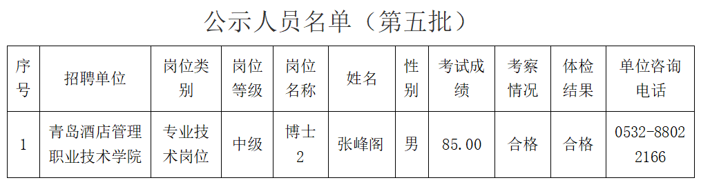 根據(jù)省委組織部、省人力資源和社會(huì)保障廳《關(guān)于印發(fā)2023年度省屬事業(yè)單位公開(kāi)招聘工作實(shí)施方案的通知》(魯人社發(fā)〔2022〕23號(hào))和省屬事業(yè)單位公開(kāi)招聘有關(guān)政策規(guī)定,按照崗位招聘計(jì)劃,青島酒店管理職業(yè)技術(shù)學(xué)院組織完成了公開(kāi)招聘考試、考察、體檢等工作,現(xiàn)對(duì)該單位第五批擬聘用人員進(jìn)行公示。公示期為7個(gè)工作日,自2023年8月29日至2023年9月6日(不含節(jié)假日)。公示期間,如對(duì)公示人選有異議,請(qǐng)向山東省商業(yè)集團(tuán)有限公司人力資源部反映。反映問(wèn)題要實(shí)事求是,并告知真實(shí)姓名及聯(lián)系方式。