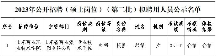 山東商業職業技術學院2023年公開招聘 (碩士崗位)(第二批)擬聘用人員公示名單