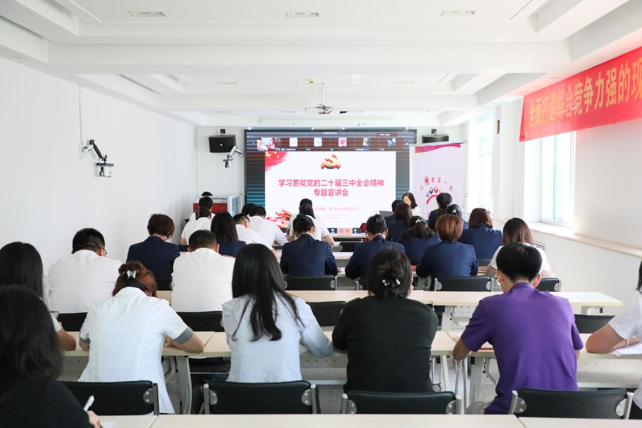 會議要求,學習好貫徹好黨的二十屆三中全會精神是當前和今后時期的一項重大政治任務。要充分認識黨的二十屆三中全會召開的重大意義和總體要求,切實把思想和行動統一到習近平總書記重要講話和黨的二十屆三中全會精神上來,切實推動黨的二十屆三中全會精神在銀座幼教落地。要持續興起學習宣傳黨的二十屆三中全會精神熱潮,多層次多角度宣傳會議精神,組織和引導基層黨員群眾加強對黨的二十屆三中全會精神的學習,切實將學習成果轉化為工作實效。要聚焦中心工作,正確分析形勢,圍繞主責主業,創建“文化年、質量年、創新年”,持續提升核心競爭力,加快轉型步伐,推動“幼教+”多元化發展,牢固樹立建設學前教育領軍品牌的堅定信念,推動事業高質量發展。